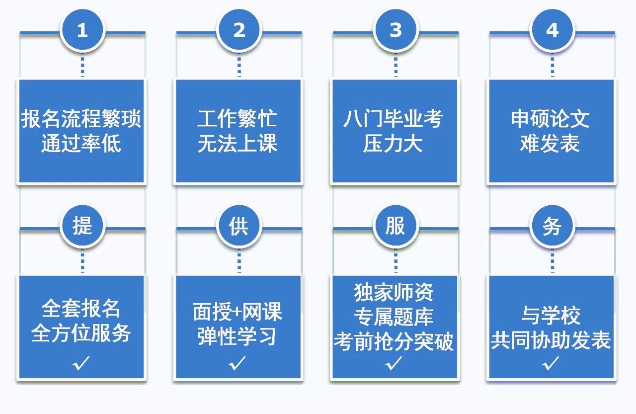 2.在职法学硕士申请全程辅导及服务(辅导期限五年,直至8门课程全部通过)
