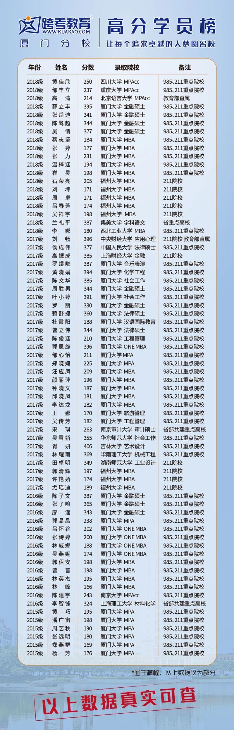 针对厦门岛内职场人员,专注在职研究生 名校考研 零基础考研,硕果累累。